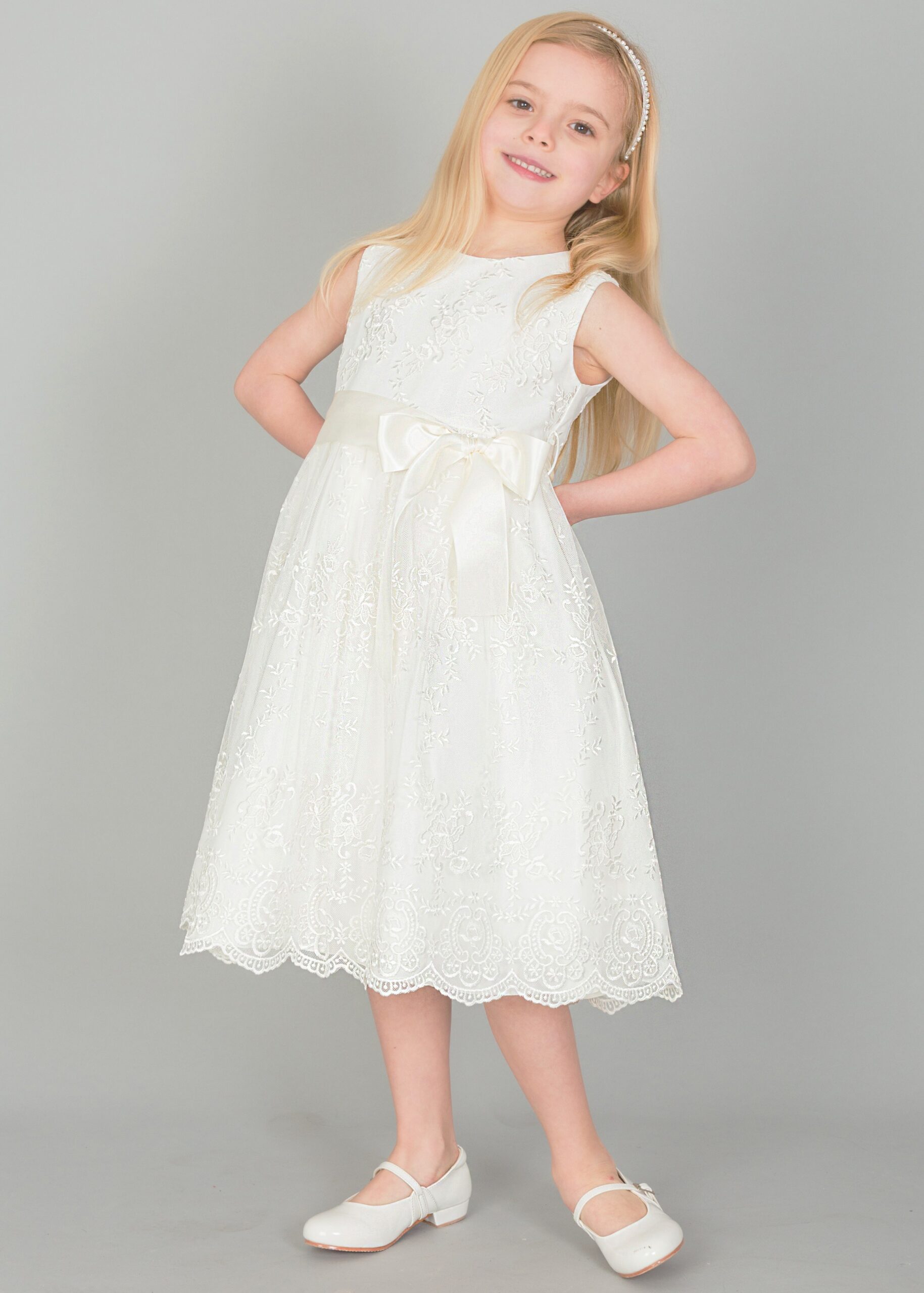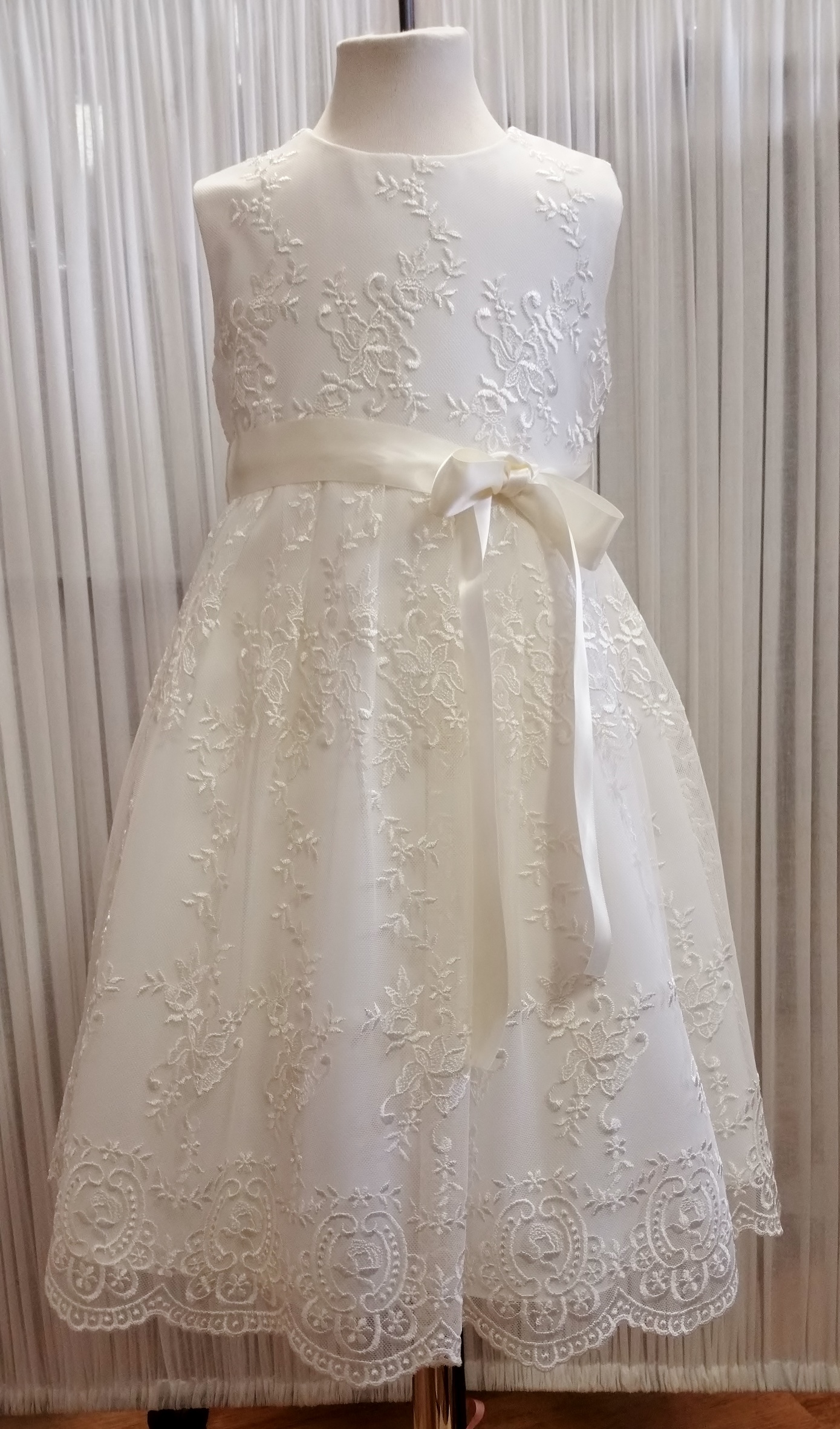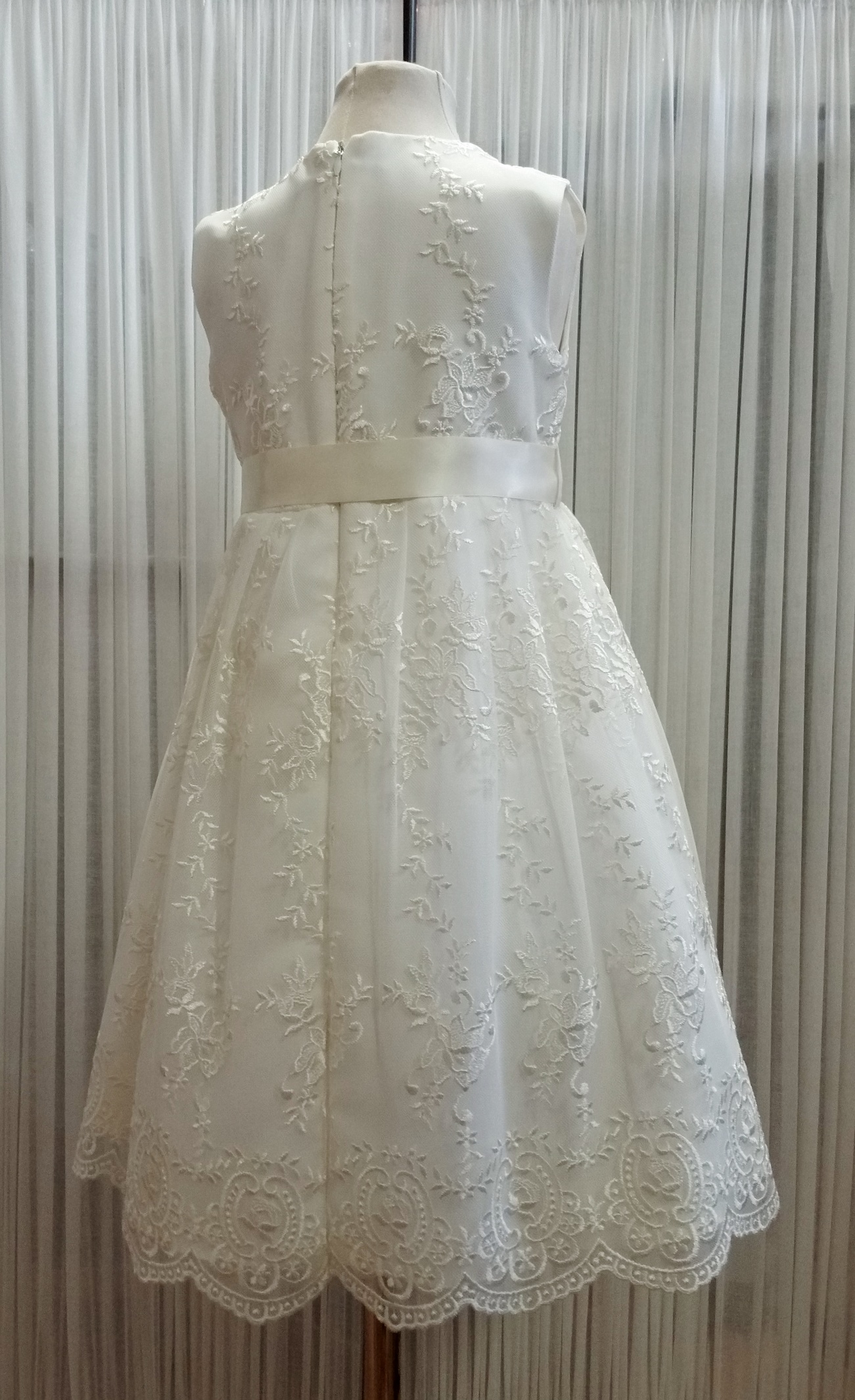 Vacker benvit spetsklänning i storlekar 98 – 140 cm.