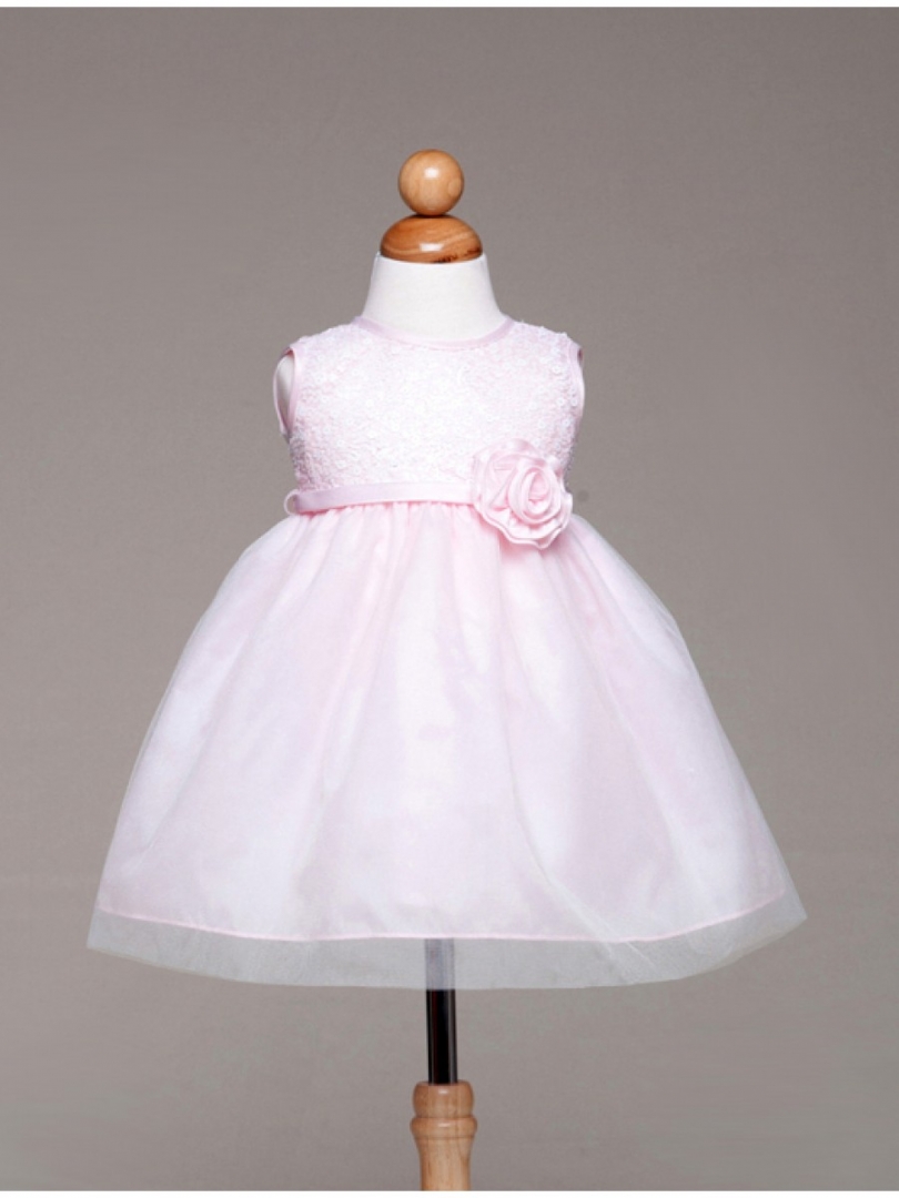 Riktig fin rosa brudnäbbsklänning. Ärmlös överdel är dekorerad med vita paljetter i olika storlekar både på fram och baksidan. Ärm- och halsöppningar är kantade med sidenband. Prinsessig tyllkjol med två lager tunnt tyll, under det satäng och längst in underkjol med tyllkant. Avtagbar smal satinband på midjan. Bandet kan knytas till en rosett baktill. Blixtlås på ryggen. Mycket fin festklänning för bröllop och fest!