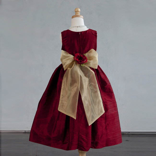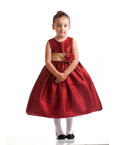 Elegant ärmlös festklänning i härlig varm röd färg i sidenliknande tyg. Avtagbar brett guldfärgad organza band på midjan som kan knytas till en rosett baktill eller bytas till en annan färg som passar till färgtemat. Avtagbar röd sidenblomma på midjan. Ballerinalängd. Underkjol med tyllkant. Blixtlås baktill. Underbar brudnäbbklänning / festklänning till kommande högtider. Komplettera med bolero eller kofta för kyliga dagar.