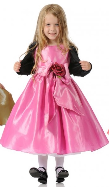 Stilren ärmlös festklänning / näbbklänning i cerise taft. Brett band på midjan sitter löst och kan bytas ut eller knytas på ryggen istället. Stor avtagbar sidenblomma medföljer. Underkjol med tyllkant. Blixtlås baktill. Mycket fin klänning som kan användas på alla högtider.