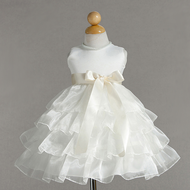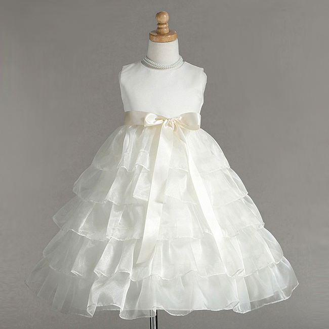 Ursöt näbbklänning med rikliga volanger i kjolen. Stilren ärmlös ivory överdel. Kjoldel består organza volanger i flera lager. Avtagbar smal sidenband på midjan som kan knytas till en rosett i ryggen eller framtill. Du kan även byta ut den till en annan färg för att matcha din färgtema! Blixtlås baktill. Denna klänning är en riktig prinsessklänning.