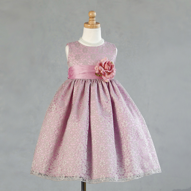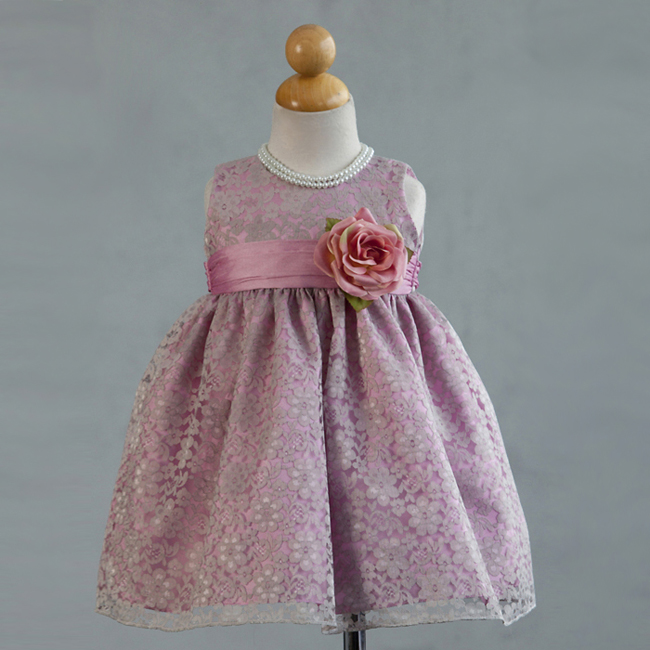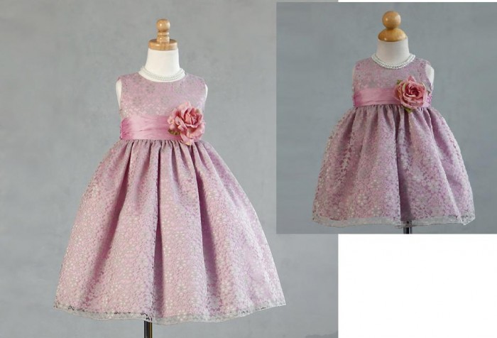 Förtjusande vacker grå-rosa spetsklänning som passar utmärkt till brudnäbbar, fest och kalas. Blommig grå spetstyg över rosa satin. Brett rosa sidenband på midjan som kan knytas till en rosett baktill. Underkjol med tyllkant. Avtagbar sidenblomma på midjan. Blixtlås baktill. Klänningens längd är ”ballerinalängd” – räcker till mitten av vaden.