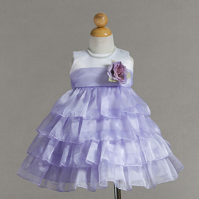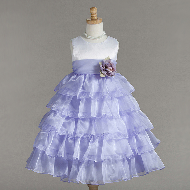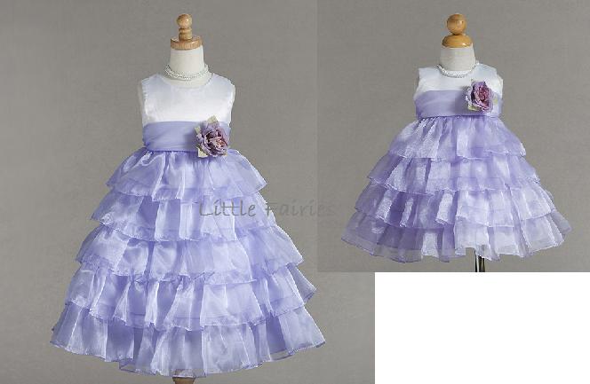 Otrolig fin näbbklänning med rikliga volanger. Stilren ärmlös vit överdel. Kjoldel består av syrenlila organza volanger i flera lager. Syrenlila organza band på midjan som fortsätter baktill och kan knytas till en rosett. Avtagbar sidenblomma på midjan. Blixtlås baktill. Denna klänning är en riktig prinsessklänning!