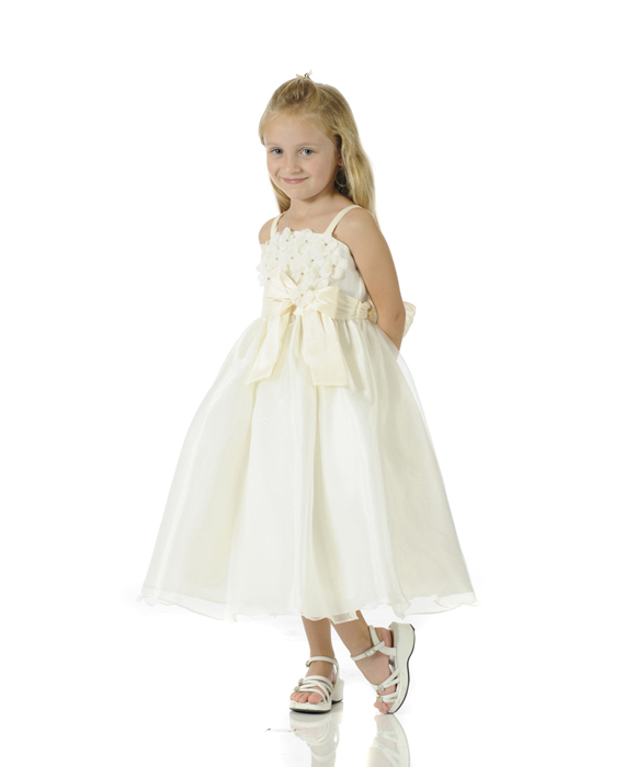 Ursöt näbbklänning i fyra olika fäger, välj mellan ljusblå, rosa, gräddvit och kritvit. Livet är dekorerad med sidenblommor med organza och glittrande strass på. Smala axelband, sidenband på midjan med avtagbar sidenrosett dekorerad med sidenblomma och strass på. Sidenband fortsätter på ryggen och kan knytas till en rosett. Blixtlås i ryggen. Den eleganta vida kjoldelen består av tre lager tyg; övrest genomskinlig organza, mellantyg av tunn satin och underkjol med tyllkant. Mycket fin näbbklänning!