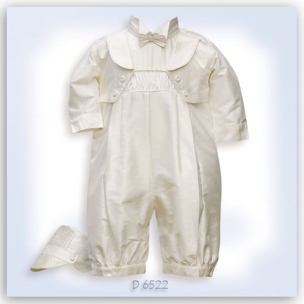 Festlig pojkdress i siden med mössa. Helfodrad ivory overall med långa ärmar och frackliknande detaljer. Kan det blir högtidligare för de allra minsta? Byxdel med knäppar underlättar blöjbyte. Mycket vacker kombination som passar till alla högtider.