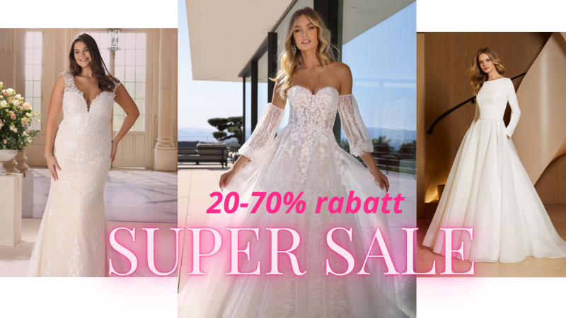På vår hemsida ser du ett urval av brudklänningar från vårt breda sortiment. I vår bröllopsbutik finns det hundratals bröllopsklänningar för provning i olika prisklasser och storlekar. Vi har storlekar 34-56 i lager och kan beställa både mindre och större storlekar. Priser varierar 4 000 kr - 30 000 kr.