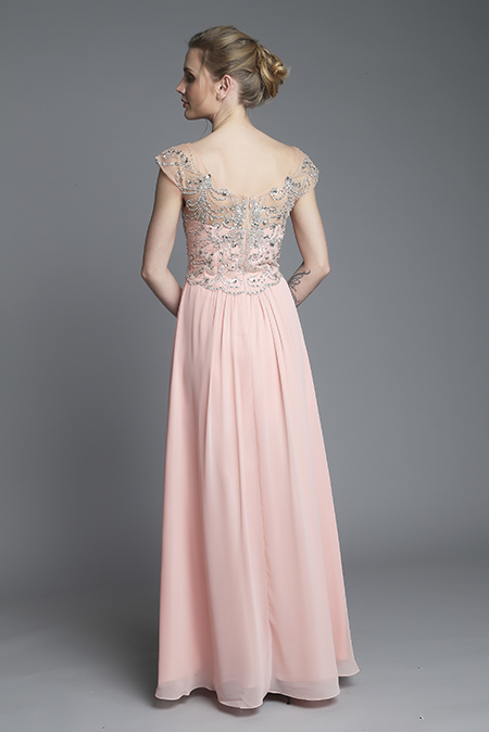 Vacker balklänning till bröllop, fest eller bal. Livet är rikligt dekorerat med paljetter. Vid chiffonkjol.