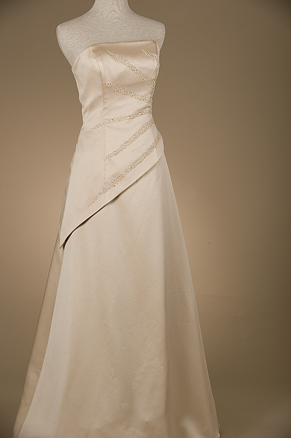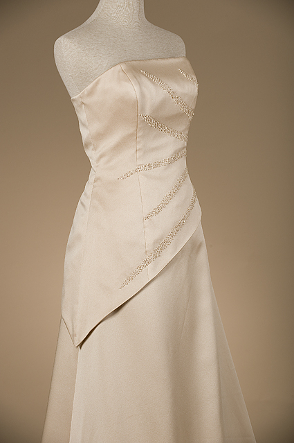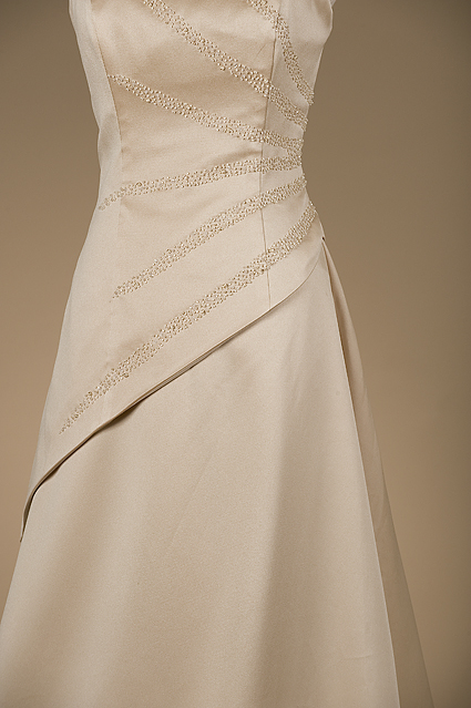 Fantastiskt vacker bal/aftonklänning med otroligt smickrande passform och smakfulla pärldekorationer. Klänningen har fastsydd livdel med sned skärning. Smala axelband medföljer. Helfodrad klänning med A-linjekjol, blixtlås i ryggen. Mycket stilig klänning!