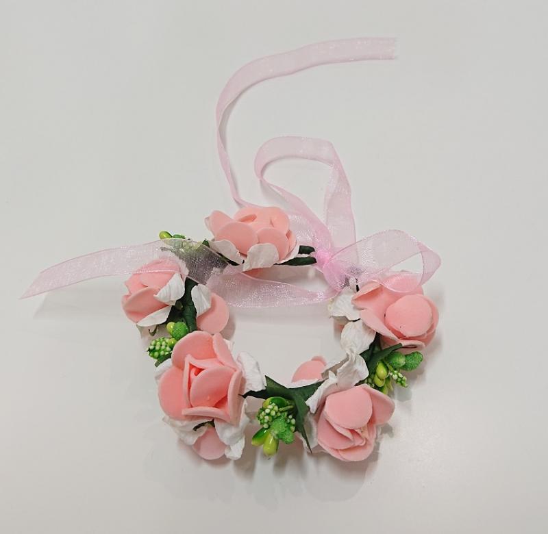 Storlek: blomstrkrans 18cm D, armband 6 cm - båda kan justeras till större storlek