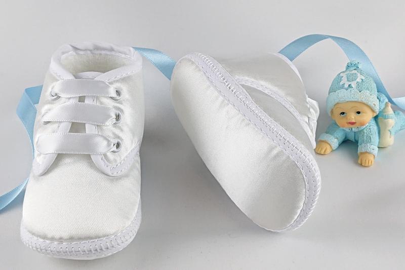 Stilrena dopskor i vitt satin. Insida mjukt frottetyg.