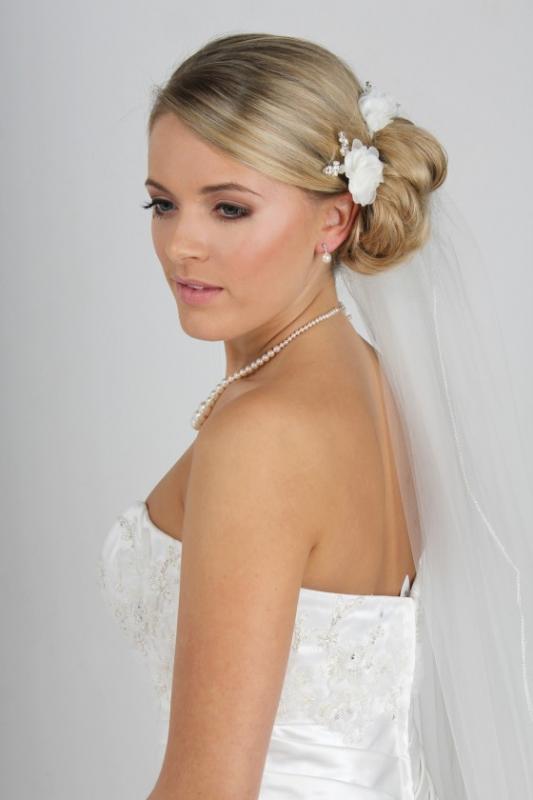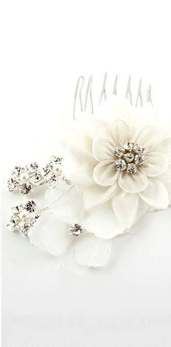 Vacker mini hårkam med handgjorda sidenblommor. Dekorerat med pärlor och kristaller. Mycket bra alternativ till hårpinnar. Passar fint till brud eller tärna.