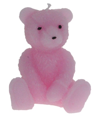 Härligt ljus i form av nalle i ljusblått eller rosa.