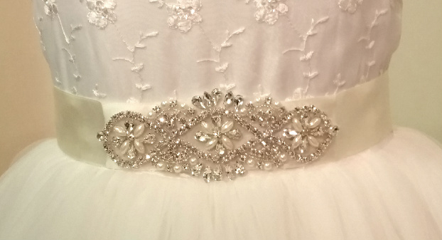 Piffa upp brudnäbbsklänning, festklänning, tärnklänning eller din brudklänning med vacker bälte med glitter och pärlor.