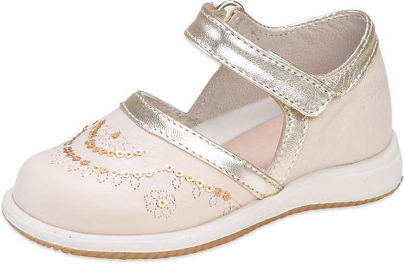 Mycket fina och luftiga läderskor i ljus beige eller mjuk rosa. Skorna är kantade med blankt band och på foten finns dekoration av paljetter. Passar utmärkt som finsko eller vardagssko.