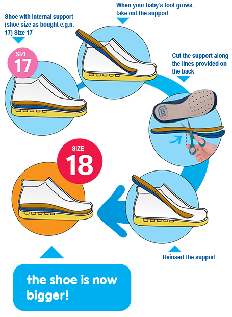 Ta hand om de små fötter och använd Mr Baby sandaler från Scholl. Två storlekar i ett! Klipp bort halva innesulan enligt instruktioner och sandalen blir en storlek större!