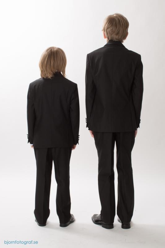 3-delad stilig smoking med smal satinband på kavajkrage. Finns i storlekar 92 - 170 cm.