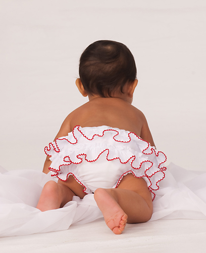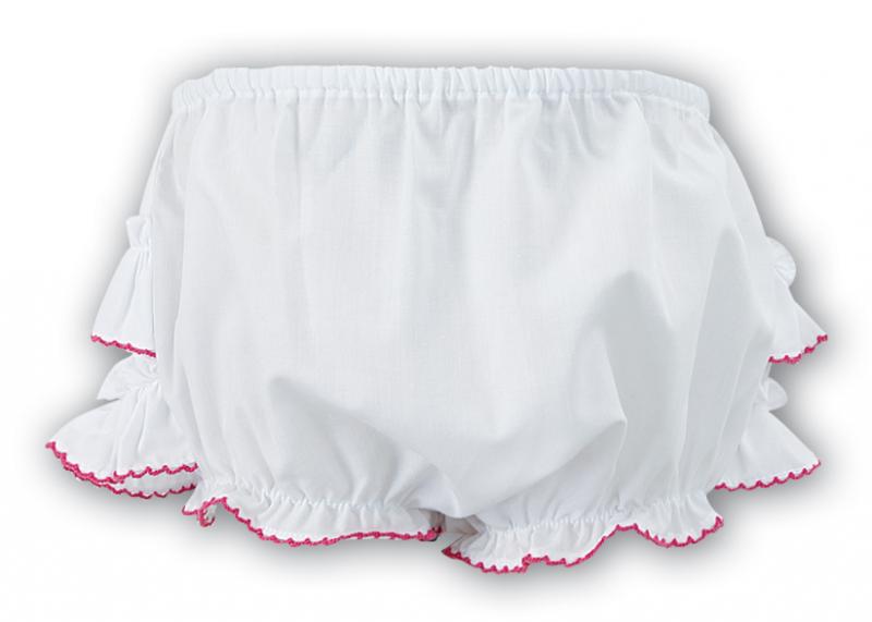 Söta vita trosor med volanger kantad med mörkblått tråd.
